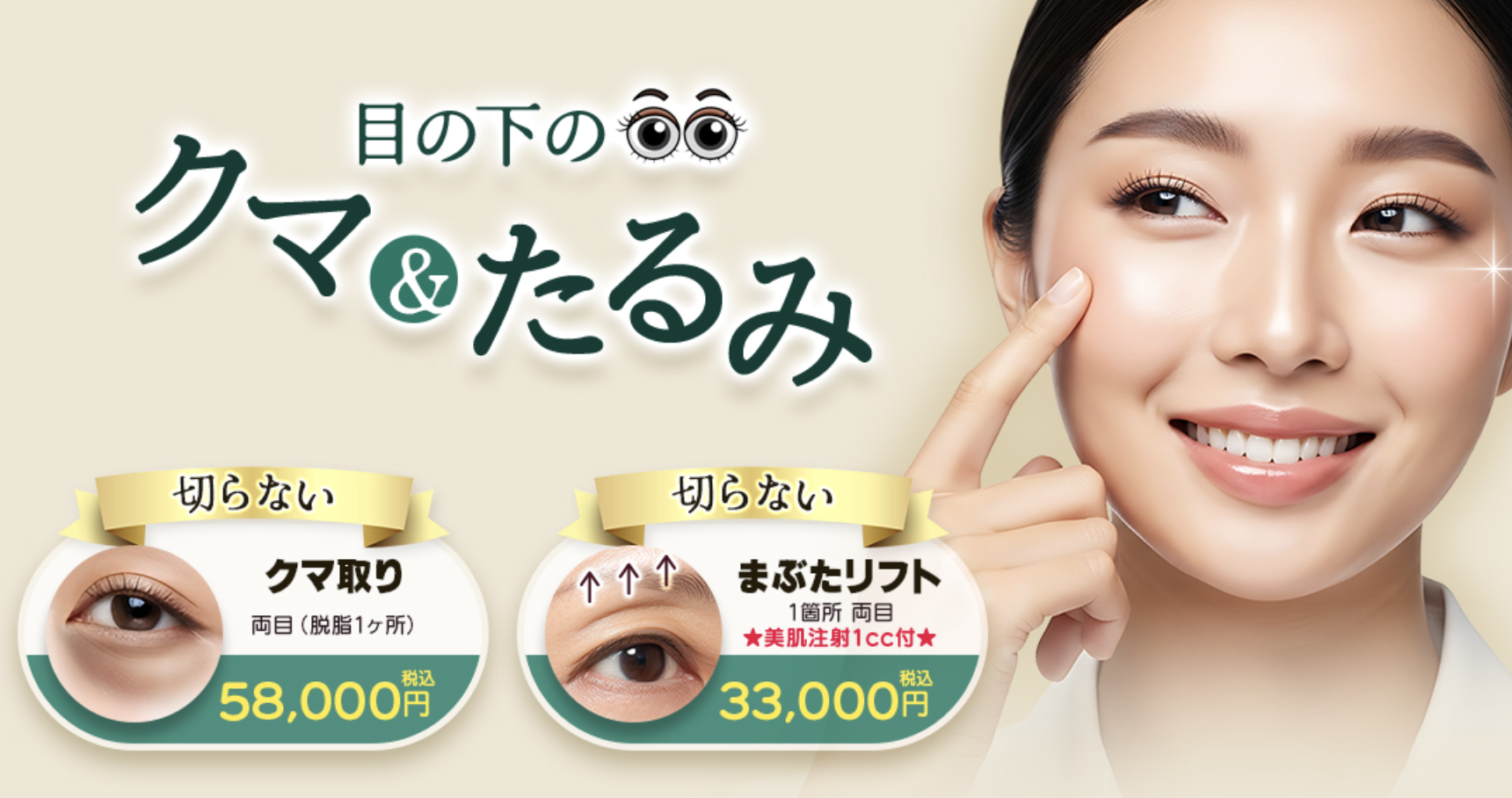 ![]() TCB東京中央美容外科 鹿児島院 | クマ取り再生注射 | 9,800円 | ヒアルロン酸注射、経結膜脱脂肪術、脱脂法、成長因子注入 | 詳細 |