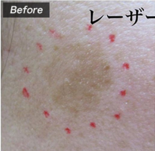 部分的な目立つシミや老人性色素班などに適した治療です。ピンポイントで照射してシミの改善に導く