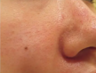 ほくろにレーザーを照射し、瘡蓋形成をして自然剥離しほくろを除去する施術